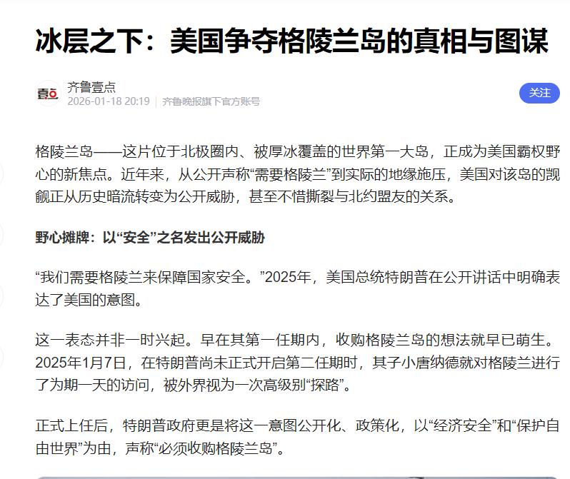 这场围绕格陵兰岛的纷争,早已超越了领土本身,成了大国战略博弈的缩影。