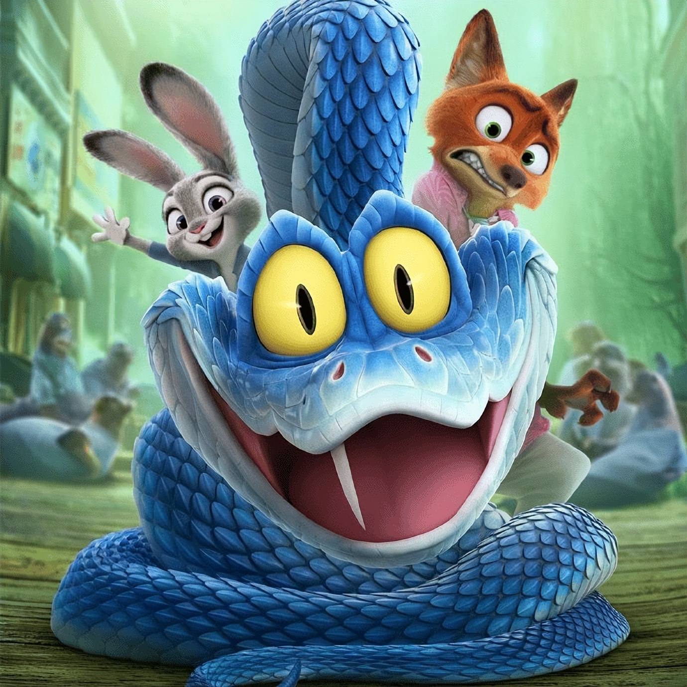 使命达成的去中心化:找到版权页时,他没有站在聚光灯下宣称 “蛇族回来了”,而是把证据悄悄塞给朱迪,自己蜷在暖灯旁啃鱼干,仿佛只是完成了一次普通的 “寻宝游戏”。对他而言,族群的救赎是 “顺便的结果”,而非 “自我的全部”
