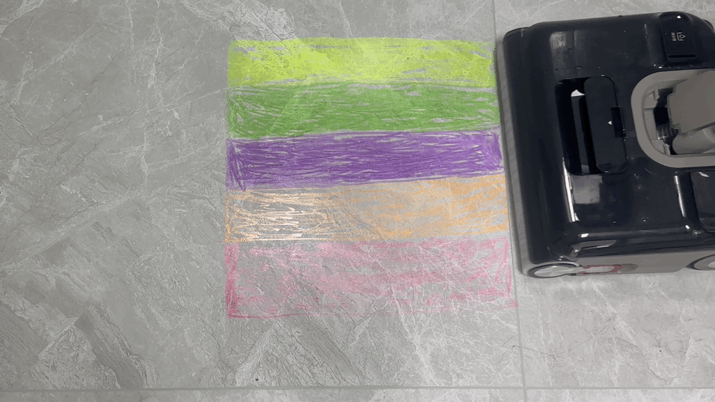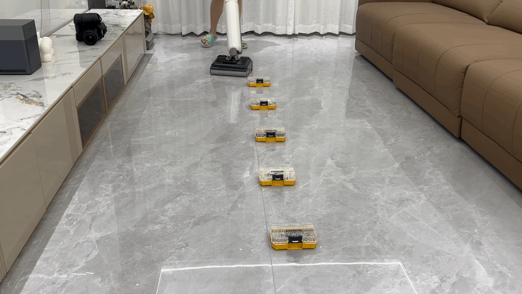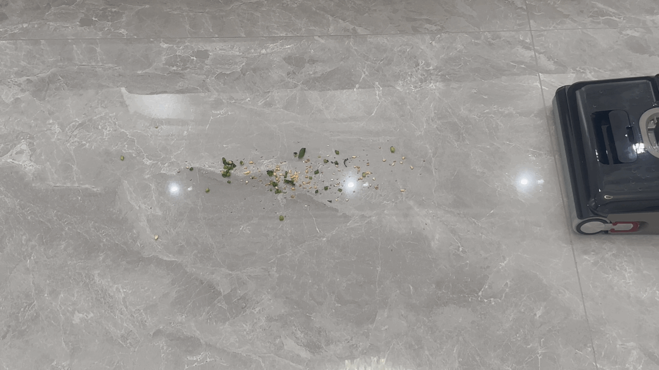 45N对地强压力搭配600转/分钟的滚刷转速,只一遍,地面就变干净了,这有点超乎我的意料。