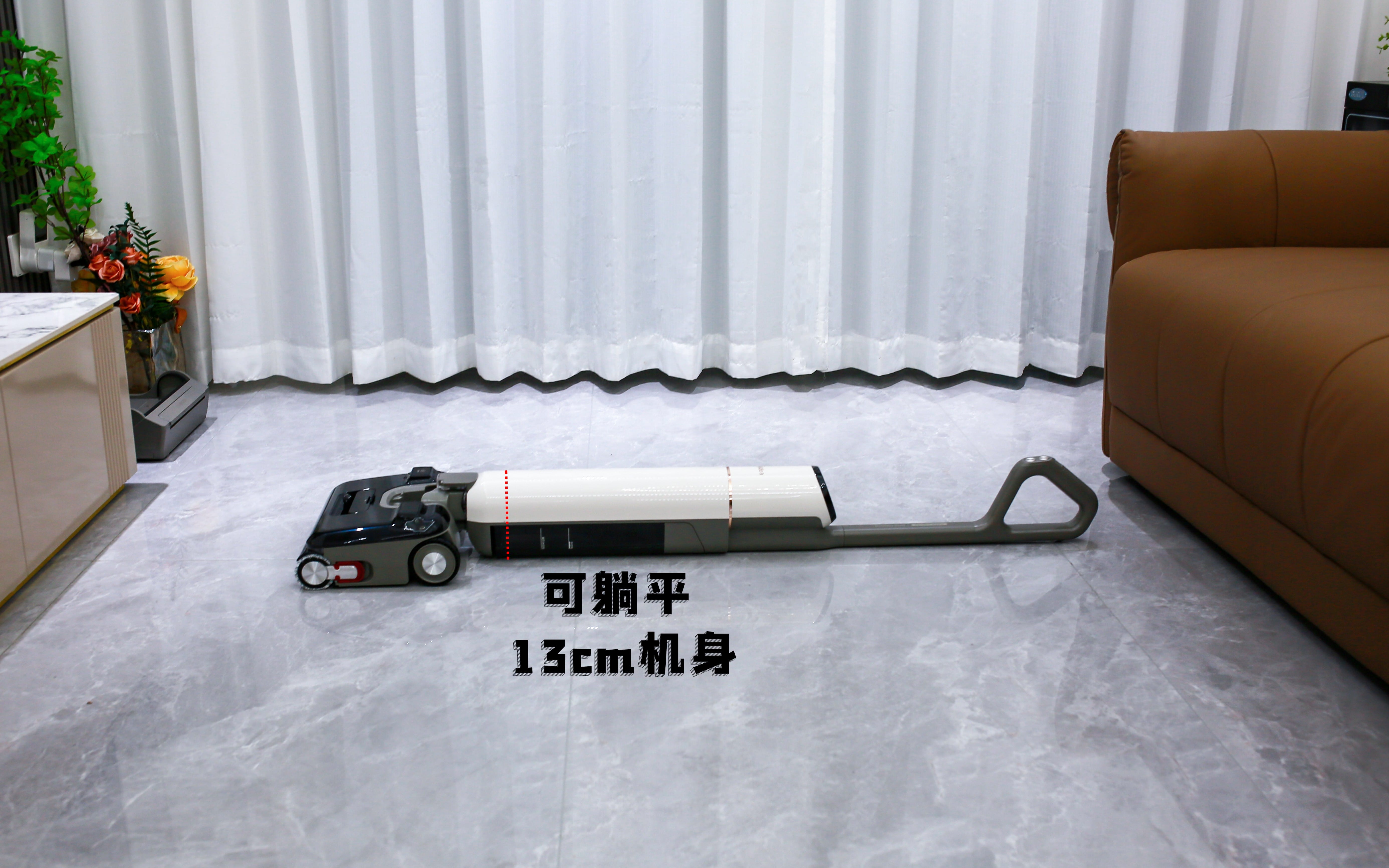 我承认,一开始我对“180°躺平清洁”这功能是持怀疑态度的,毕竟很多号称“可躺平”的洗地机,真到沙发底、床底下就“躺尸”了,不是吸力变弱,就是根本够不到。但美的 S60 的表现,真的是把“躺平不躺尸”演绎到了极致。