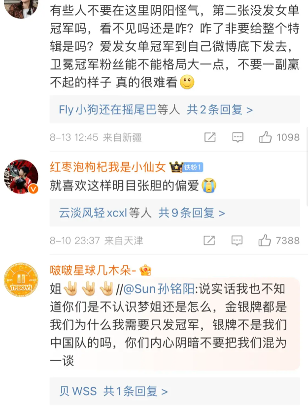 孙铭阳发国乒冠军照,网友挑拨离间遭回怼,网友:键盘侠嘴真贱