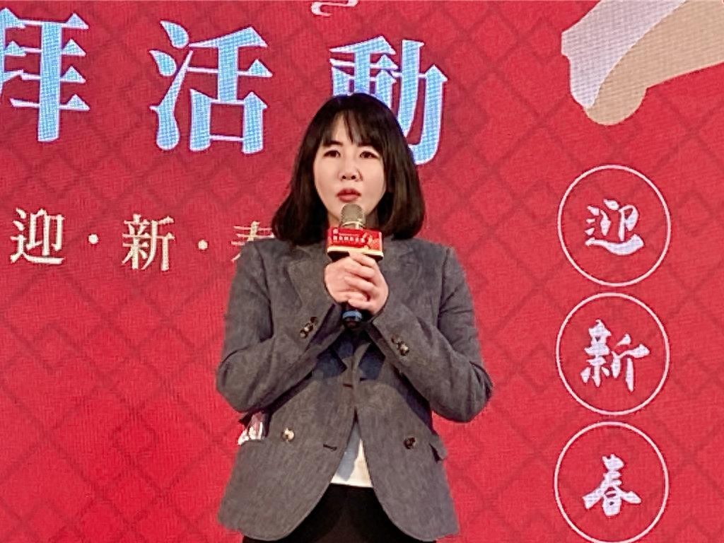 大年初七,岛内各行各业都已开工,彰化县各界新春团拜活动上午在彰县府中庭举行,彰化县长王惠美一改昔日常穿的黑色套装,今天以粉紫色套装登场,散发神采飞扬的气场。