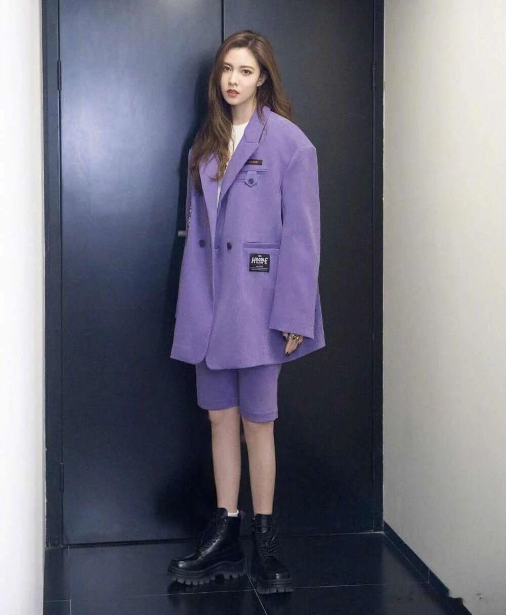 西装中裤 + 同色系西装外套 + 尖头平底鞋 = 高级套装感