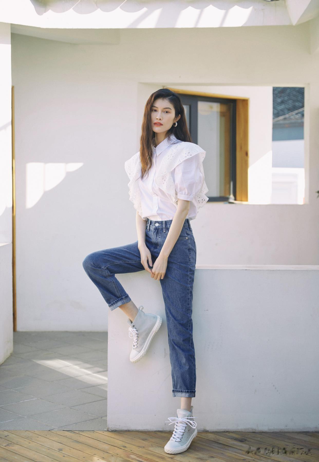 白衬衫 + 九分直筒牛仔裤 + 乐福鞋 = 法式休闲风