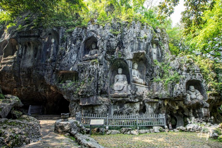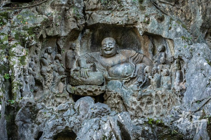 飞来峰是全国第二批重点文物保护单位,传递出的史料信息丰富又密集——从五代到明代,400余尊造像,年份最久的已经有1000年历史;它还是历朝历代名人雅士的“留言板”,官方公布的飞来峰题刻就有180多处,而实际上,还有更多未被史料记录的。不经意间哪块石头上,可能就镌刻着传世书法名作。