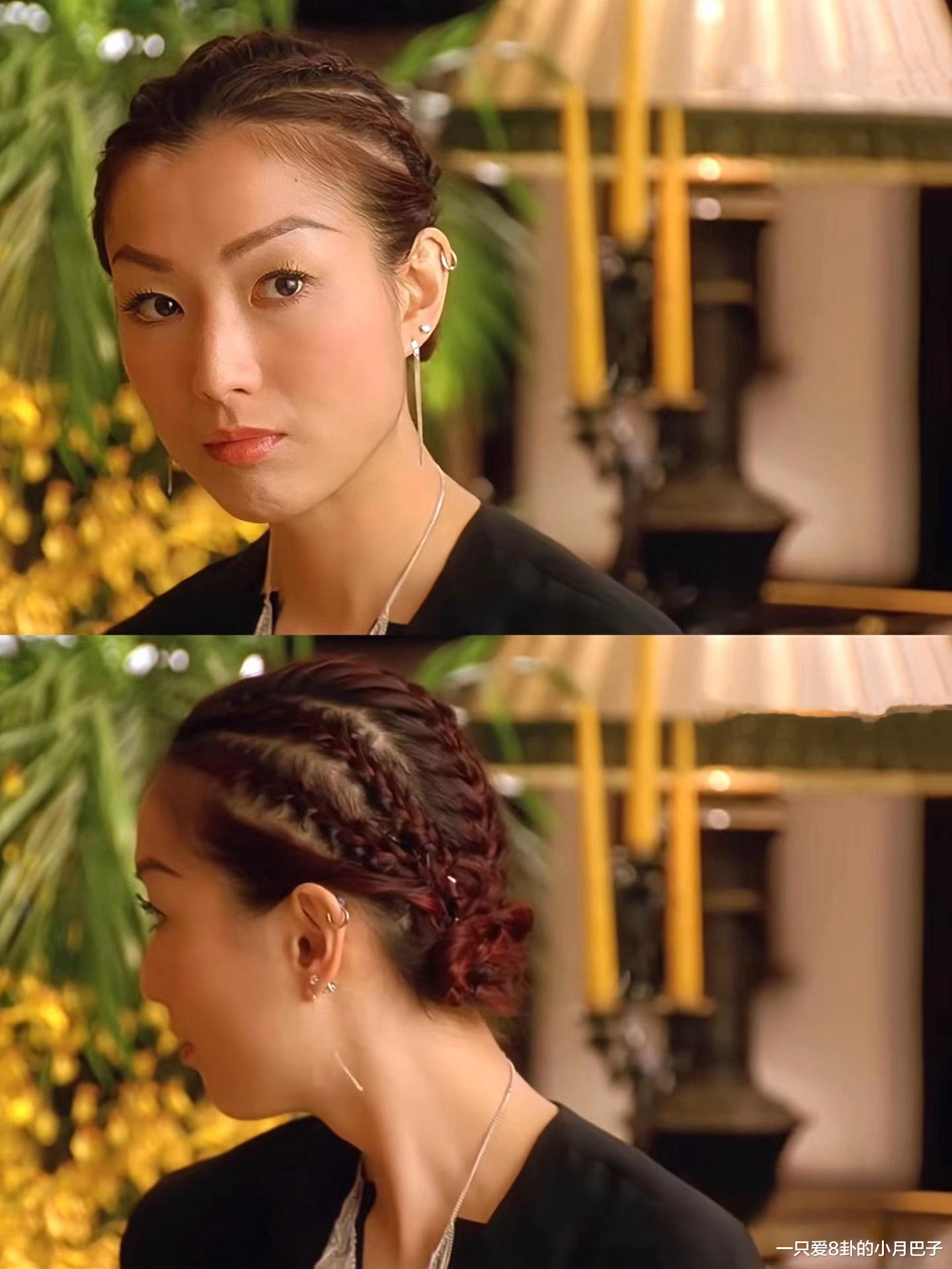 张柏芝早期作品里好多她戴耳环的造型,但是随着年龄的增长,她好像把自己叛逆的一面偷藏在灵魂深处了。