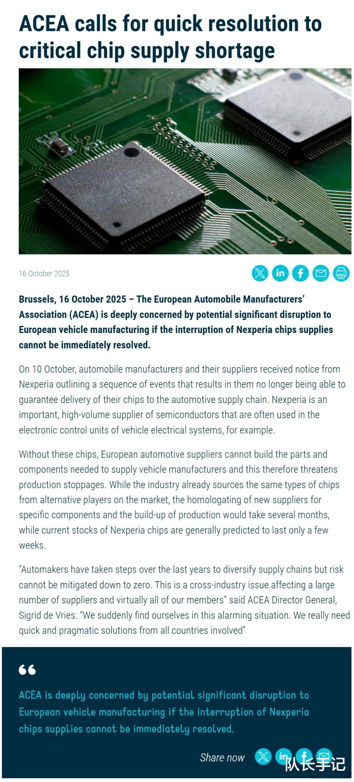强制夺取安世半导体的股权,荷兰被反噬了。欧美汽车制造商协会,突然对荷兰发出一封警告信。信的内容是什么呢?主要就是反对荷兰,强制冻结闻泰科技对安世半导体的股权。这是怎么回事呢?明明是荷兰冻结安世半导体股权,把闻泰科技驱逐出去了,怎么一众欧美车企还反对了呢?这背后,隐藏了怎样的软肋?