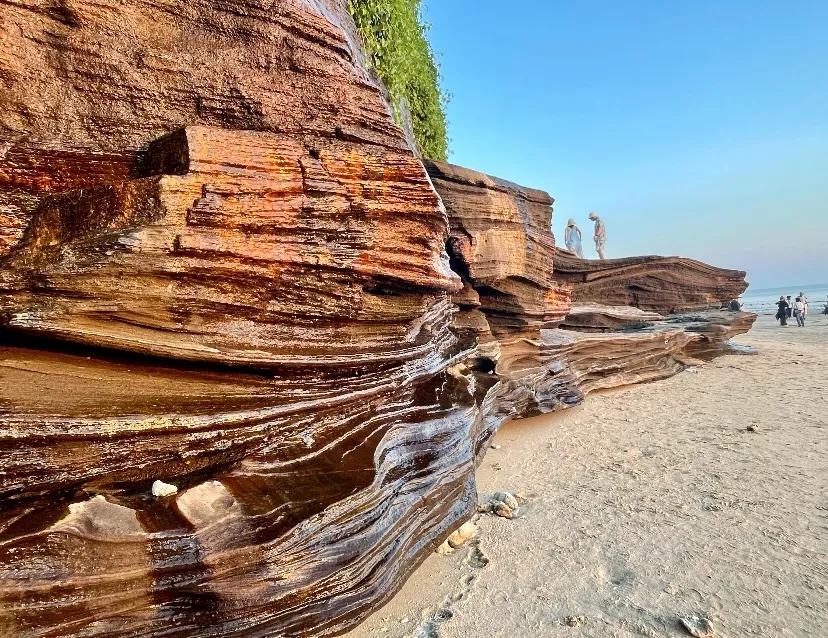 滴水丹屏:位于涠洲岛西海岸,因岩石上常年滴水而得名,岩石形成的悬崖峭壁纹理清晰,崖顶之上藤树缠绕,景色独特,十分优美,是观赏日落的绝佳之处!