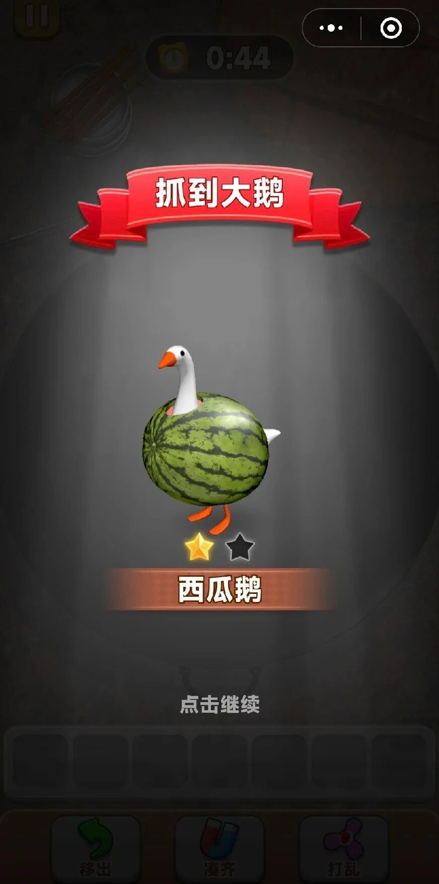 新手期(农家小院 - 古堡玄关,1-15 关):优先解锁 “快速点击” 技能(第 3 关奖励),针对高频出现的 “青花瓷碗”“竹编筐” 等固定元素,采用 “从左到右横屏扫描” 法,单局耗时可压缩至 90 秒内。注意 “柴堆” 场景的隐藏彩蛋 —— 点击冒烟的柴火会弹出 3 只同款小鹅,一次性消除可额外获 50 积分。