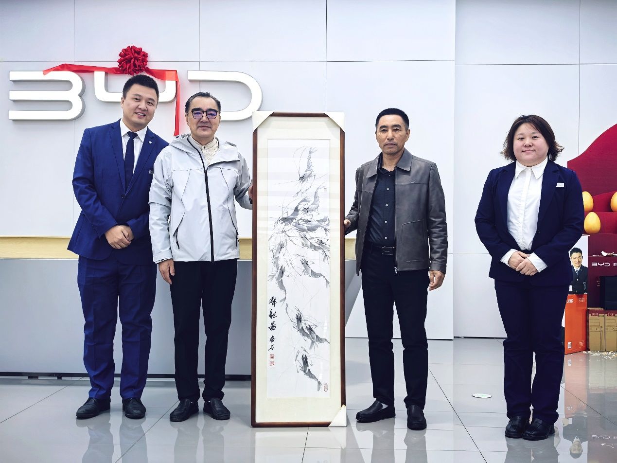 比亚迪鸿生坤元北湖店首任车主为庆典发言并赠画