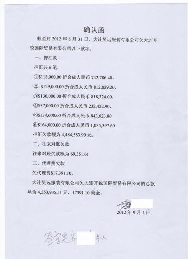 虚构业务伪造合同骗款,刑事立案证据链完整闭环据开锐公司负责人介绍,2012年2月,大连昊远公司实际经营人齐某委托开锐公司代理服装出口业务,要求其垫付货款。经齐某介绍,开锐公司与中国出口信用保险公司(以下简称“中信保”)业务经理宋某结识,宋某的合作背书成为开锐公司同意合作的关键。随后,开锐公司通过中信保、哈尔滨银行大连分行搭建融资担保渠道,借助挪用的第三方信用额度获得贷款,按齐某提供的信息与三家国外企业签订6份出口合同,累计垫付71.2万美元(折合人民币460万元)至齐某控制的公司,约定120天内回款。