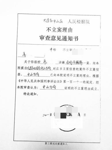 不予立案通知 图六(代表人提供)