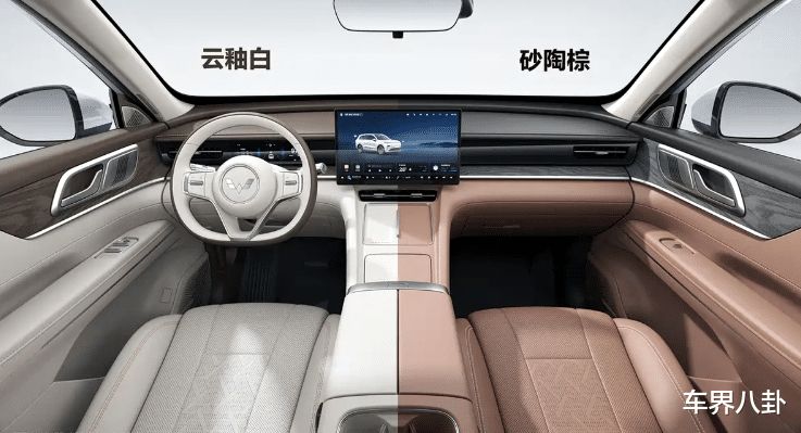 拉开车门,内饰给云釉白和砂陶棕两款配色。