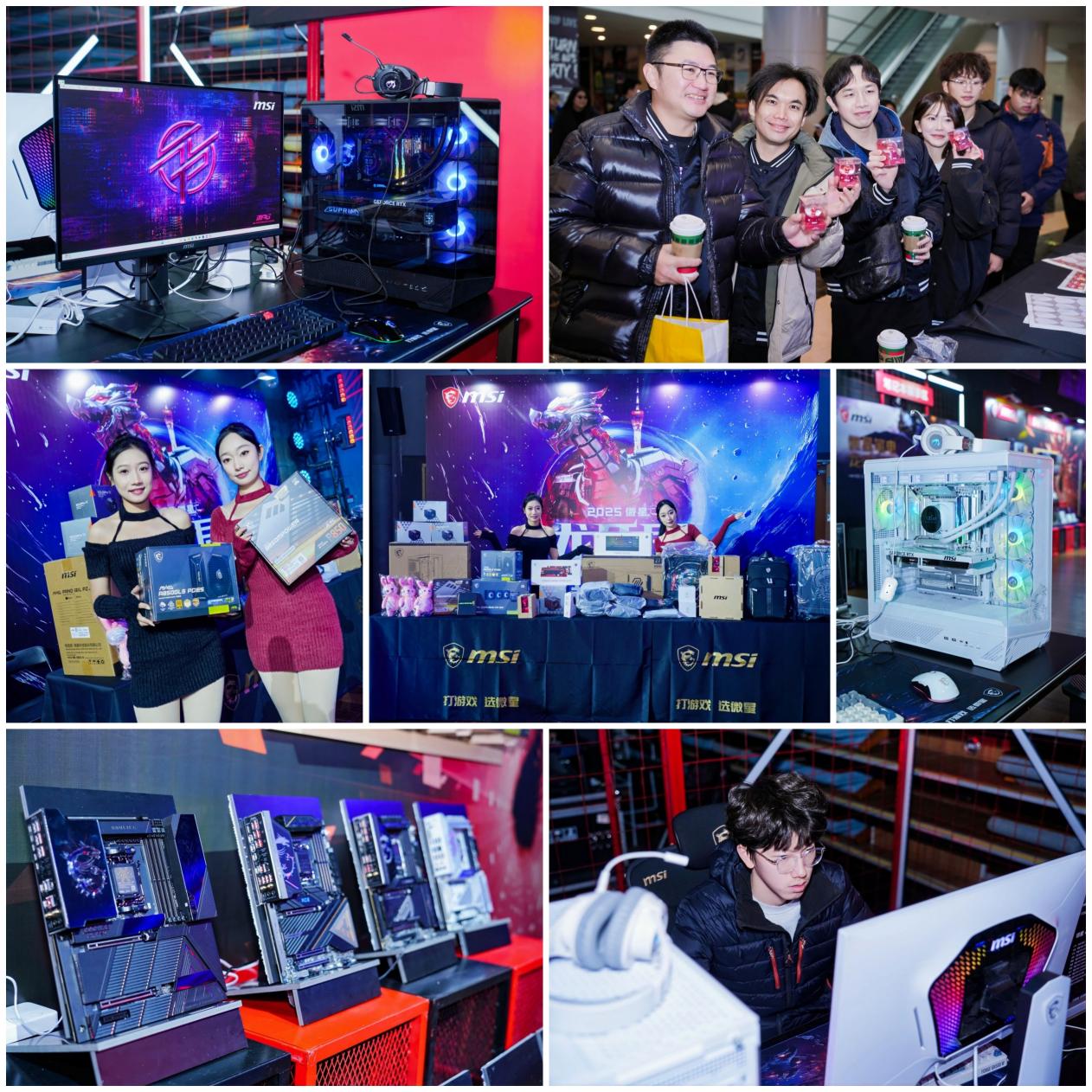 本次活动得到了AMD、闪迪、英特尔、云彣、芝奇等众多战略合作伙伴的鼎力支持。现场穿插多轮抽奖,奖品涵盖微星主板、显示器、电源、水冷、键鼠、电竞背包及合作伙伴提供的内存、U盘等丰厚礼品,最终两款终极大奖——微星超频利器B850MPOWER主板与新品显示器MAG 275QF E21黑刃的现场抽取,将气氛推向顶峰。