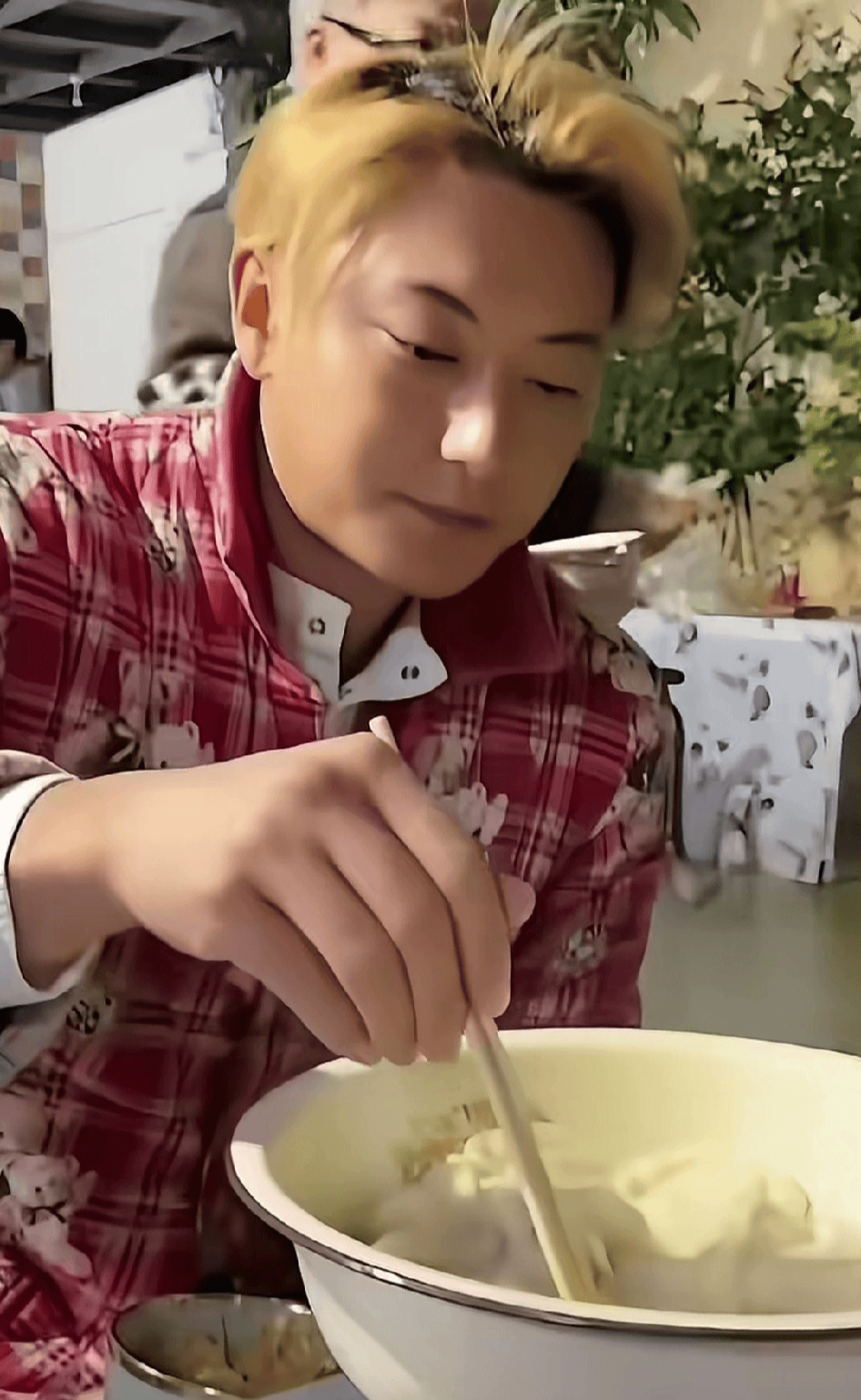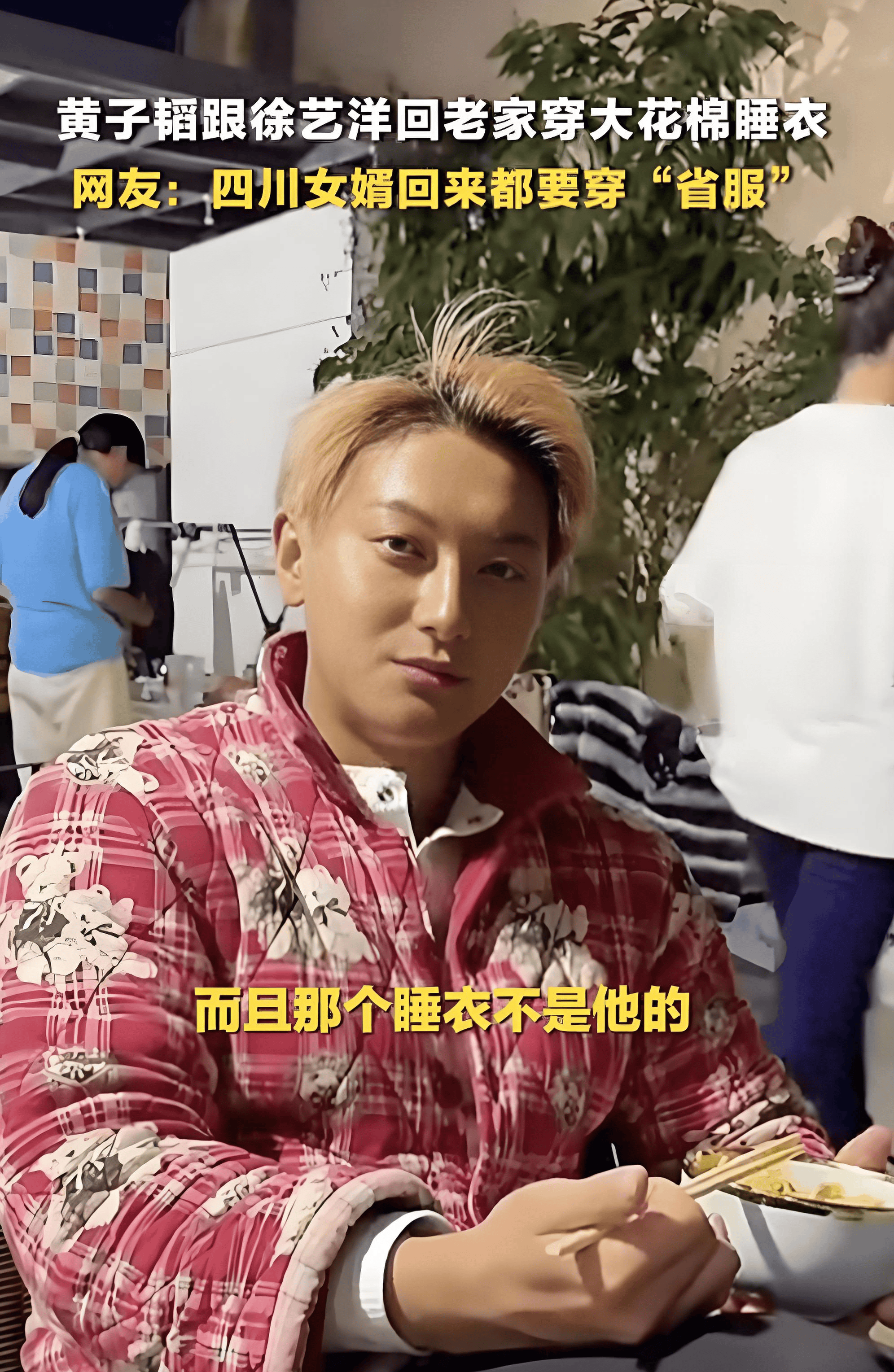 黄子韬裹着红底碎花棉睡衣吃蘸红油饺子镜头引爆全网。
