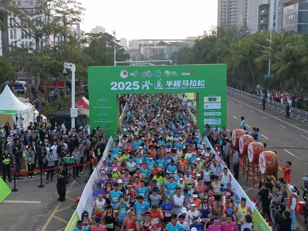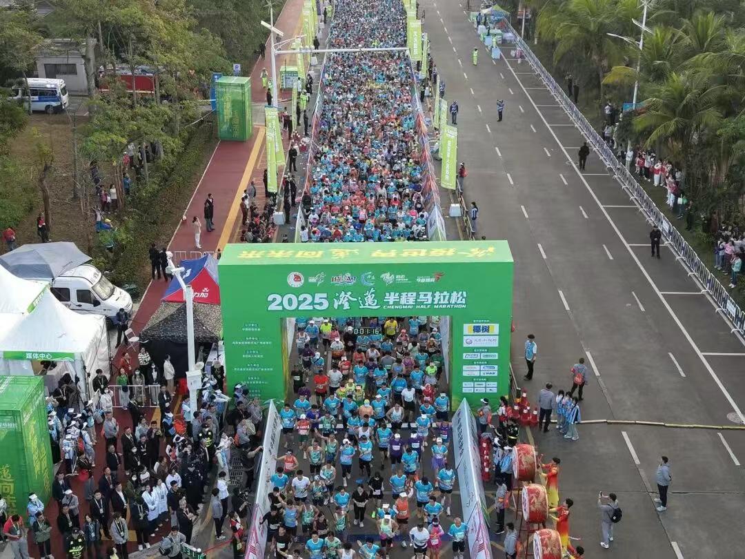 近6000名跑者自海南老城科技新城管理委员会前广场激情出发,在澄迈的碧海蓝天间开启了2025澄迈半程马拉松的活力征程。