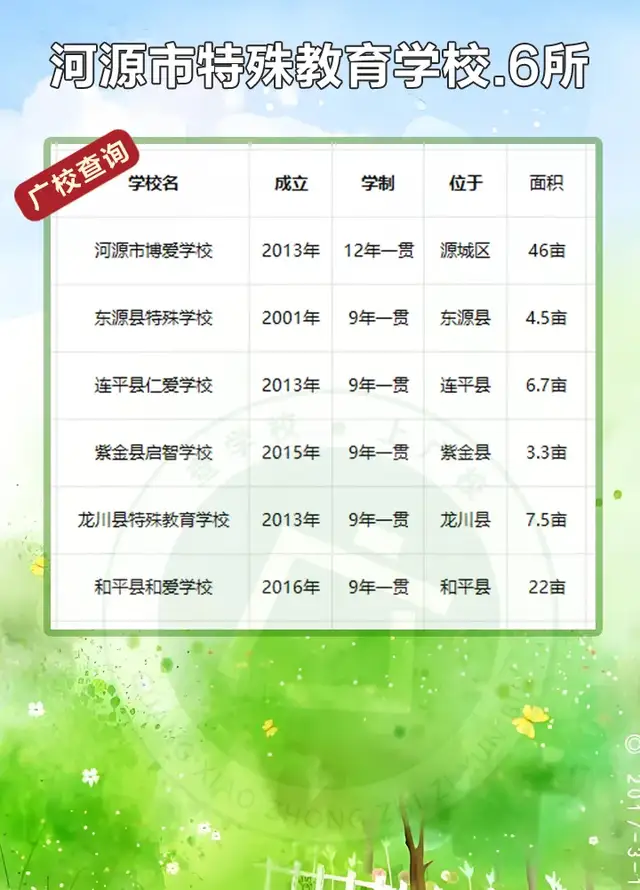 河源市公办智障、孤独症、脑瘫特殊教育学校【6所】