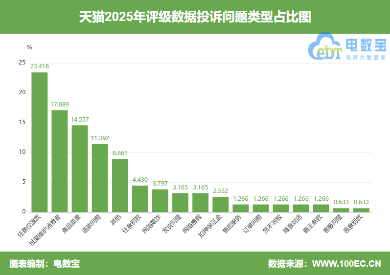 4月3日,网经社通过对“天猫”(浙江天猫网络有限公司)2025年电诉宝受理的全年真实用户投诉案例大数据分析,公布了“天猫”2025年电诉宝消费评级数据、年度投诉数据及典型案例。