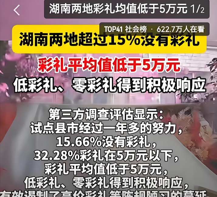 有些地方也在行动。河北大庄村成立红白理事会,定规矩:彩礼5万以下,酒席不超过12桌,婚车最多6辆 。德江县的村民自己商量:红喜事不超过30桌,每桌控制在300块以内,非亲属礼金不超过200块 。算下来,一户一年能减负近6000块。