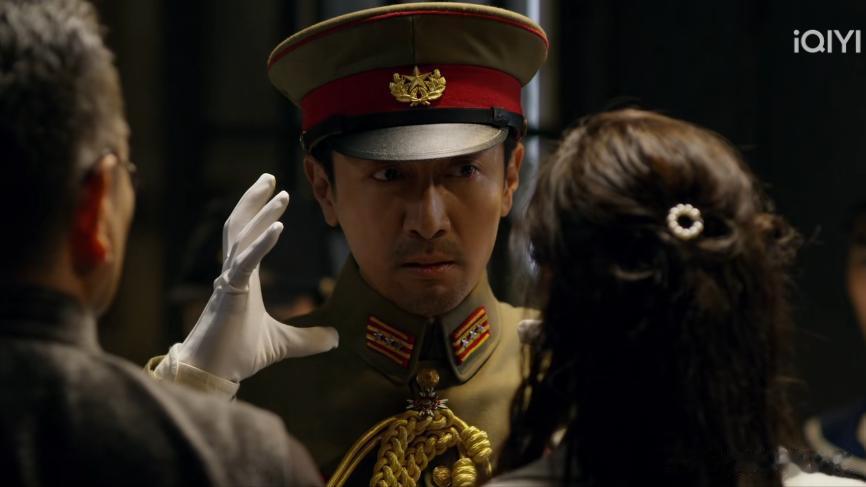 叶碧莹被日本人抓住,他救出叶碧莹后,问叶碧莹是谁解开了她的衣服扣子时,又开始模仿那个日本兵,你看他两眼一瞪,用力把脸颊凹进去,嘴巴努成了簸箕状。然后又岔开手,比划那个胖子日本兵。我想,看到这里,很多观众都忍不住笑了,这么多人在旁边看着,他本应该树立自己的威严,却开始搞笑起来,好好的高级军官和特工,让他演成了逗乐的小丑!