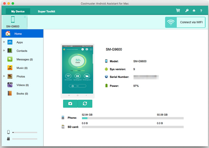 2.2 如何使用Coolmuster Android Assistant for Mac将文件从Android传输到MacCoolmuster Android Assistant for Mac / Windows是一款可以帮助您轻松管理Mac或Windows PC 上Android内容(如视频、音乐、联系人、照片、短信和应用程序)的程序。