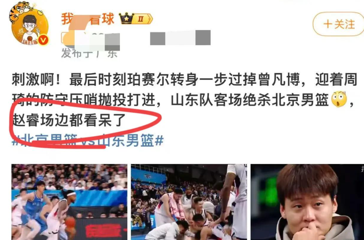 这场比赛真刺激,最后时刻,珀塞尔转身一步过掉曾凡博,迎着周琦的防守压哨抛投打进,山东男篮客场绝杀北京首钢男篮。伤缺的赵睿在场边观战。