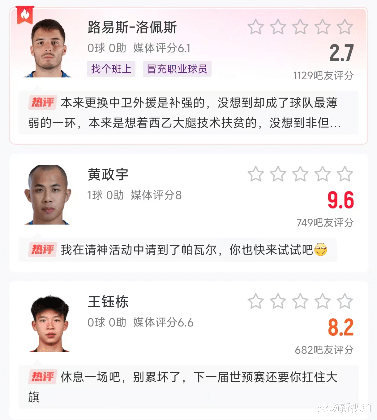 首先就是洛佩斯,正是因为他的低级失误,导致被卡列洛迅速扳平比分,而在赛后,洛佩斯也是被评为全场最差,得分也仅为2.7分,而对于洛佩斯的表现,也是有球迷直言,本来更换中卫外援是补强的,现在却成了球队最薄弱一环,他必须要离队了……