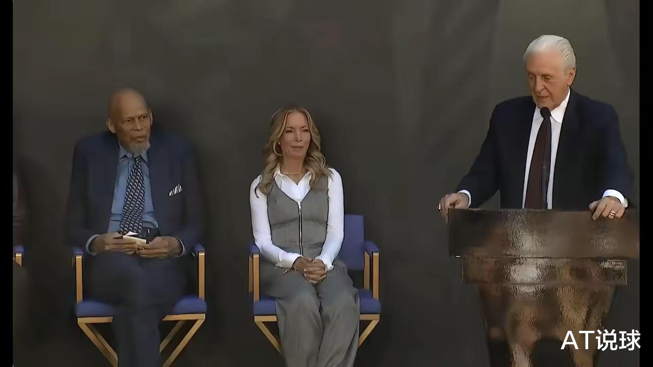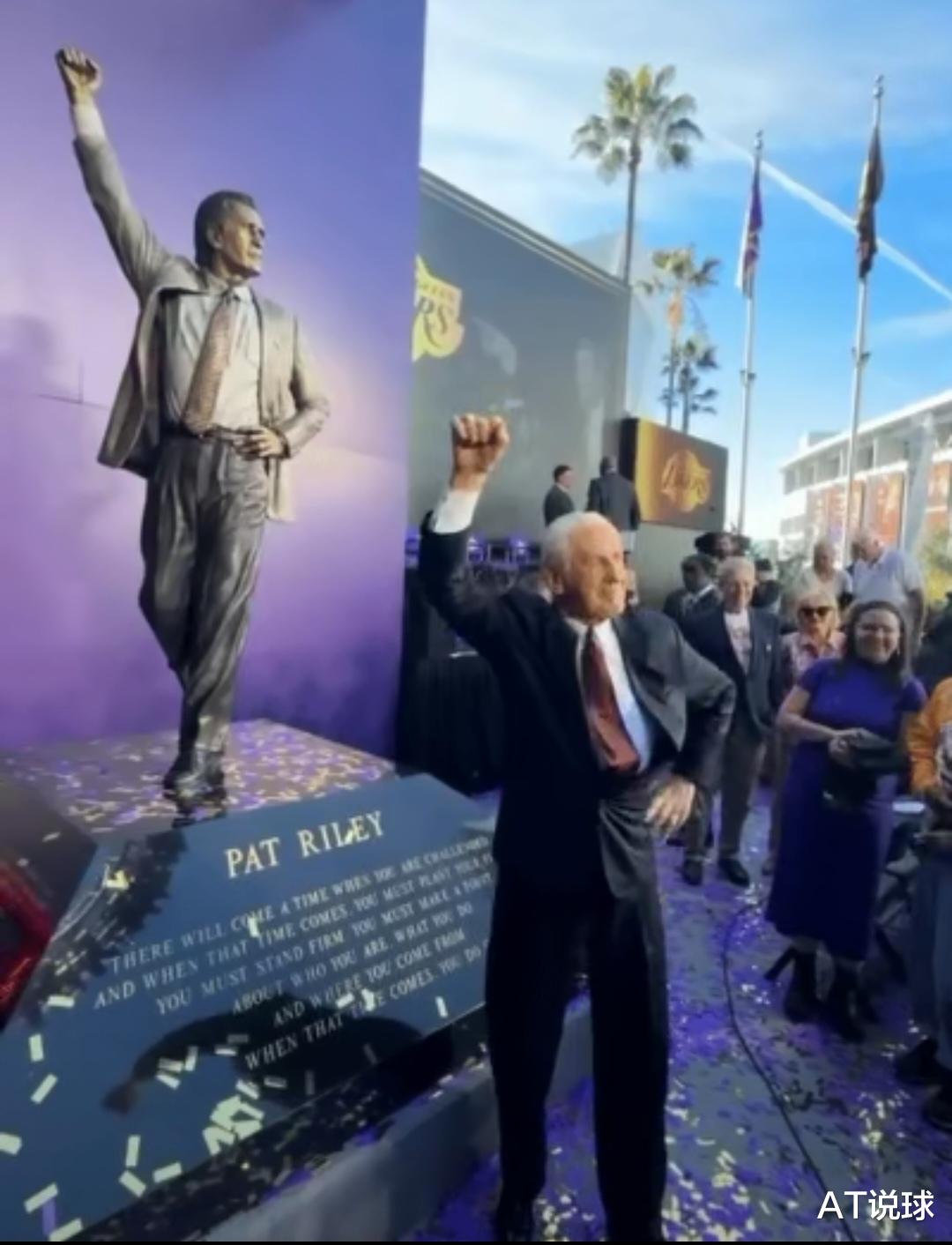 帕特莱利现任热火总裁,一手打造了大名鼎鼎的巅峰三巨头阵容。可老球迷都知道他真正出彩的地方是开启了湖人的showtime时代,将魔术师和贾巴尔捏合成了NBA的超强双人组合。为了回馈这位功勋教练,湖人管理层特意为他制作了雕像。这座雕像从神态和动作完美还原了帕特莱利执掌湖人时的风采样貌,引起了现场的一片拍手叫好。