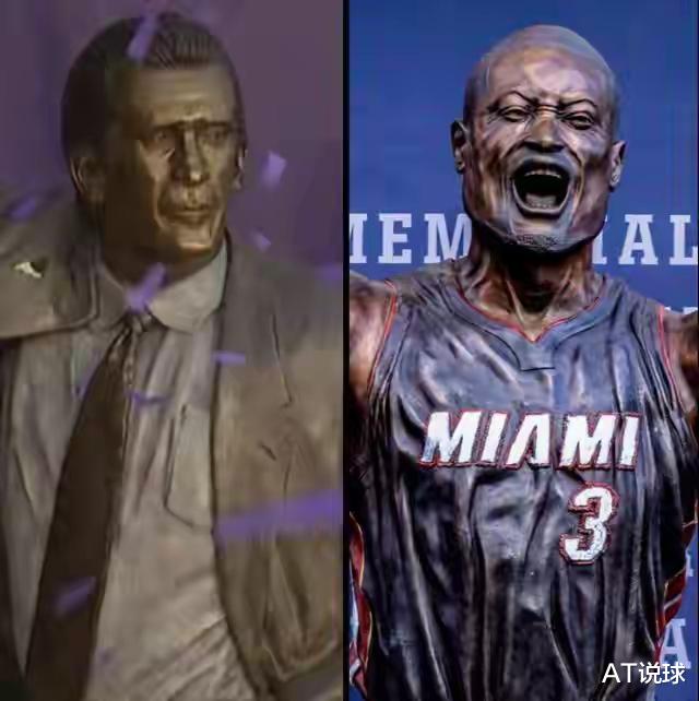 正所谓没有对比就没有伤害,相较于湖人为莱利打造雕像的精致和真实,韦德的雕像真的像是拿错了建模参考。