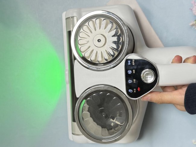 ② 清洁实力双滚刷 + 双吸口结构,12 万次 / 分钟高频拍打 + 15kPa 大吸力,深层瓦解螨虫。UV-C 紫外线杀菌 +60℃热风烘干,双重抑制螨虫滋生,尘螨感应灯让清洁更有针对性。