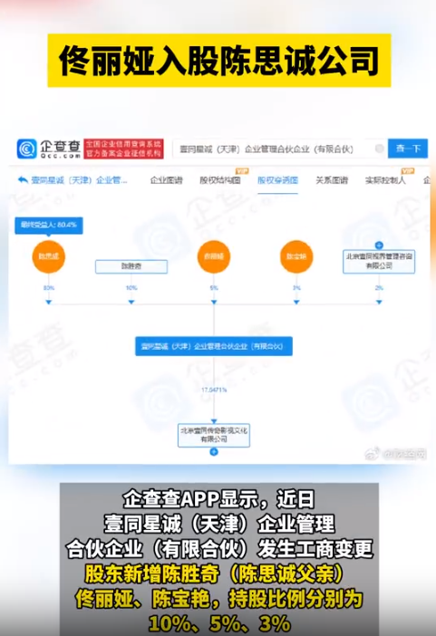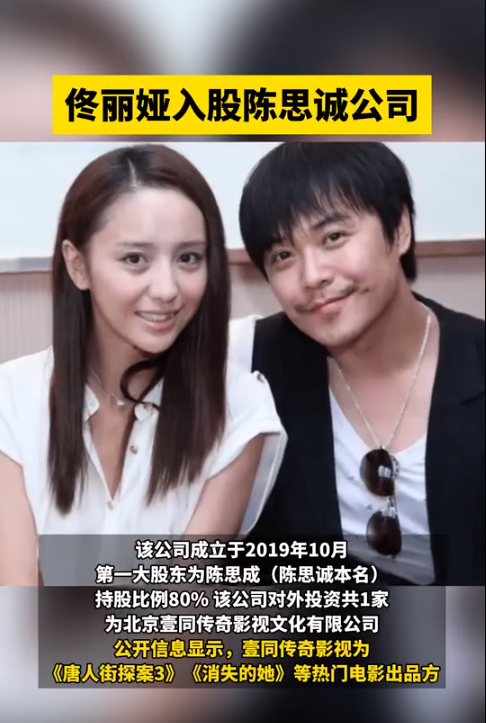 佟丽娅与陈思诚结婚7年,原本是人人称羡的一对,但2017年时却爆出陈思诚疑似出轨,惊爆离婚消息。佟丽娅则是继续拍戏,人气也不受婚变影响,佟丽娅近日被发现入股了前夫陈思诚的公司,据企查查APP显示,陈思诚名下除自己父亲外,还出现了前妻佟丽娅的名字,而女方的持股比例为5%。