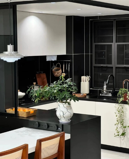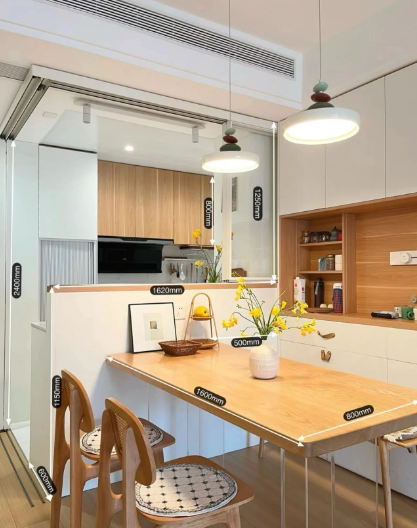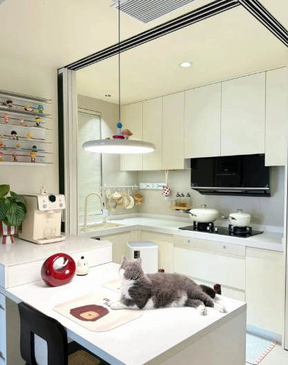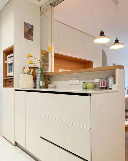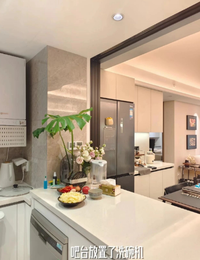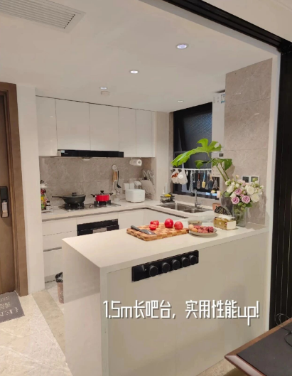 不像封闭式厨房,除了做饭没啥别的用,半开放直接把厨房变成家里的 “多功能区”,小户型真的太需要这种设计了!