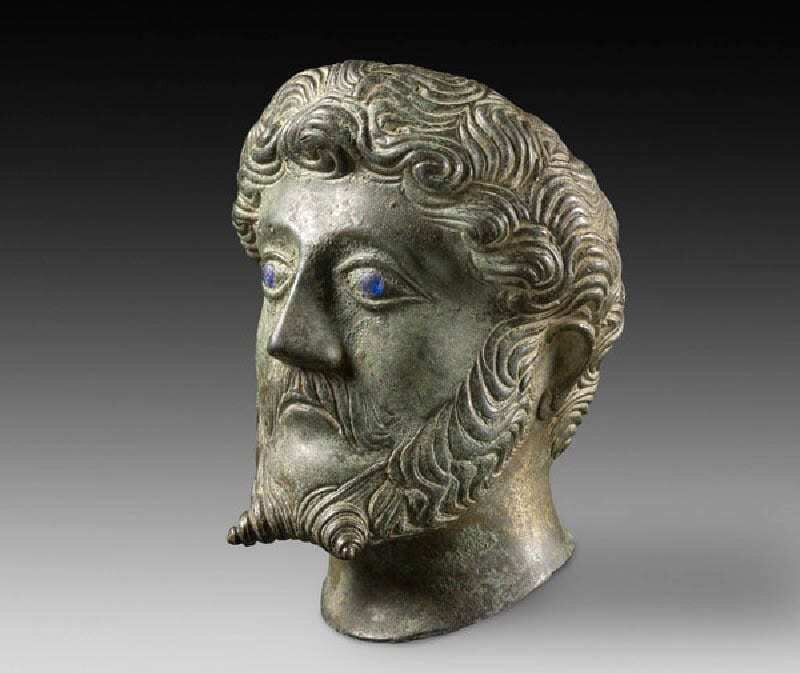 所谓的“男子头像”,通常被认定为马可·奥勒留;青铜半身像,眼部镶嵌宝石,公元2世纪