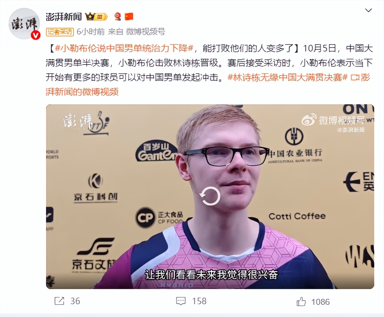而勒布伦的这次中国大满贯之旅,虽然能够连胜3位中国选手闯进决赛,却未能成为一次圆梦之旅。决赛中遭遇了王楚钦的光速碾压,他本人也屡次露出尴尬的神情,尴尬表情包瞬间走红。可能他本人也没想到在这场比赛中全程被王楚钦压制,几乎无还手之力。