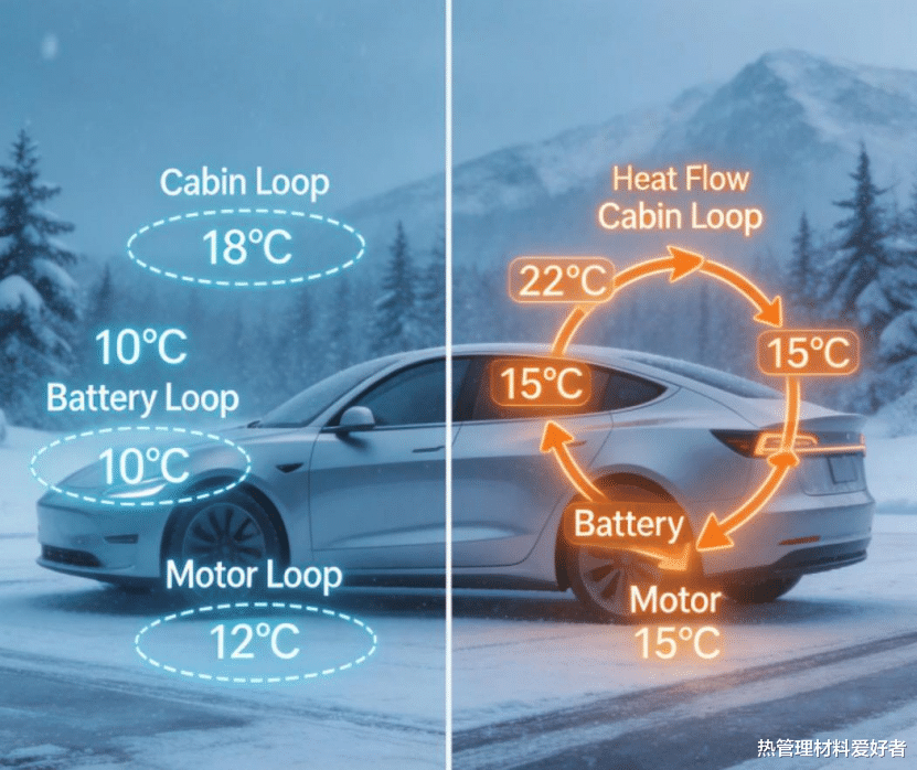 对新能源汽车的终端用户而言,冬季续航大幅缩水,始终是用车过程中最直观、最普遍的痛点。这一问题的核心根源,就在于动力电池的 “温控失衡”:低温环境下,电池内部锂离子活性会显著下滑,直接导致充放电效率大幅衰减;而在高温工况下,大功率快充又会催生热失控的安全隐患。行业过往的传统热管理方案,大多采用分立式设计,电池、电驱、座舱空调各成一套独立循环,不仅带来了管路结构繁杂、能耗偏高的问题,更无法实现整车热量的协同调配与互通复用,这也正是新能源汽车行业亟待攻克的核心技术难点。