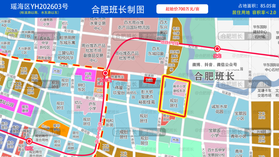 瑶海区YH202603号地块位于瑶海区裕溪路以南、水东路以东,地块面积约85.05亩,为纯居住用地,容积率2.0,起拍楼面价约5250元/平。