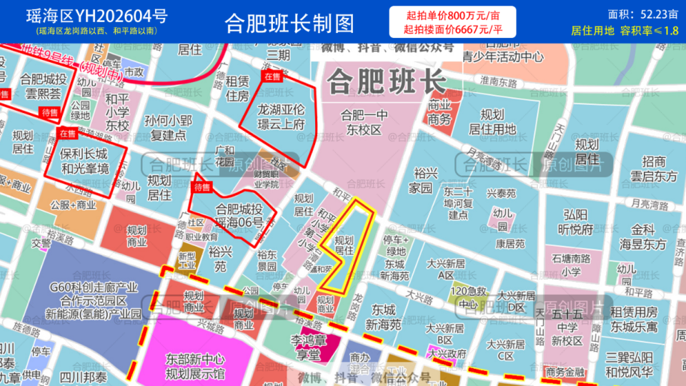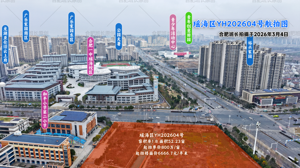 瑶海区YH202604号地块位于东部新中心的龙岗路以西、和平路以南,占地52.23亩,容积率1.8.