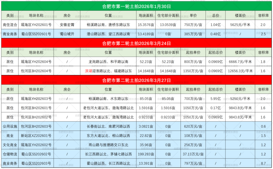 以上就是合肥1-3月三场土拍的地块情况,后续土拍结束后,再和大家分享拿地信息。