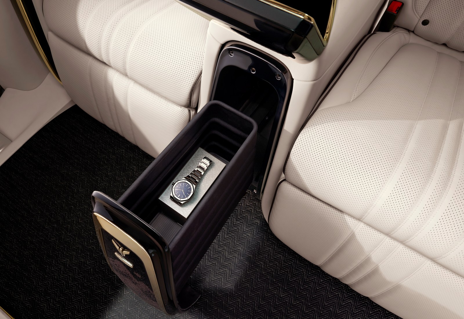 车门附近与劳斯莱斯异曲同工的内置长柄雨伞槽并不意外,但有一项配置你绝对没想到——密码保险箱,贵重物品和重要商业文件放在里面就踏实多了。图9b