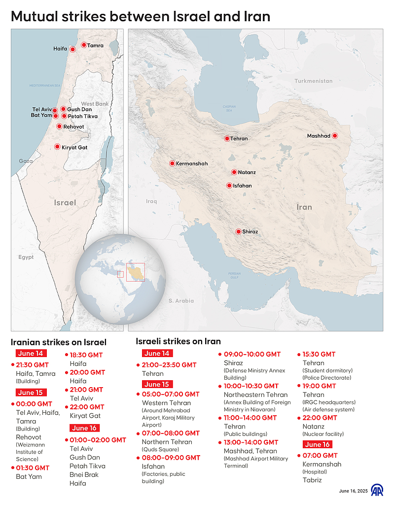 这一行动迅速引发伊朗的强烈回应。6月13日起,德黑兰宣布休战拒绝,并进行反击。数百枚战术导弹和无人机向以色列方向飞来,目标包括特拉维夫周边与重要基础设施。以色列的“铁穹”防御系统虽成功拦截大部分弹道,但仍有建筑物受损,大量平民受惊受伤。两国进入公开对抗阶段,地面爆炸、雷达阵地被集中袭击,多地民众进入防空洞。
