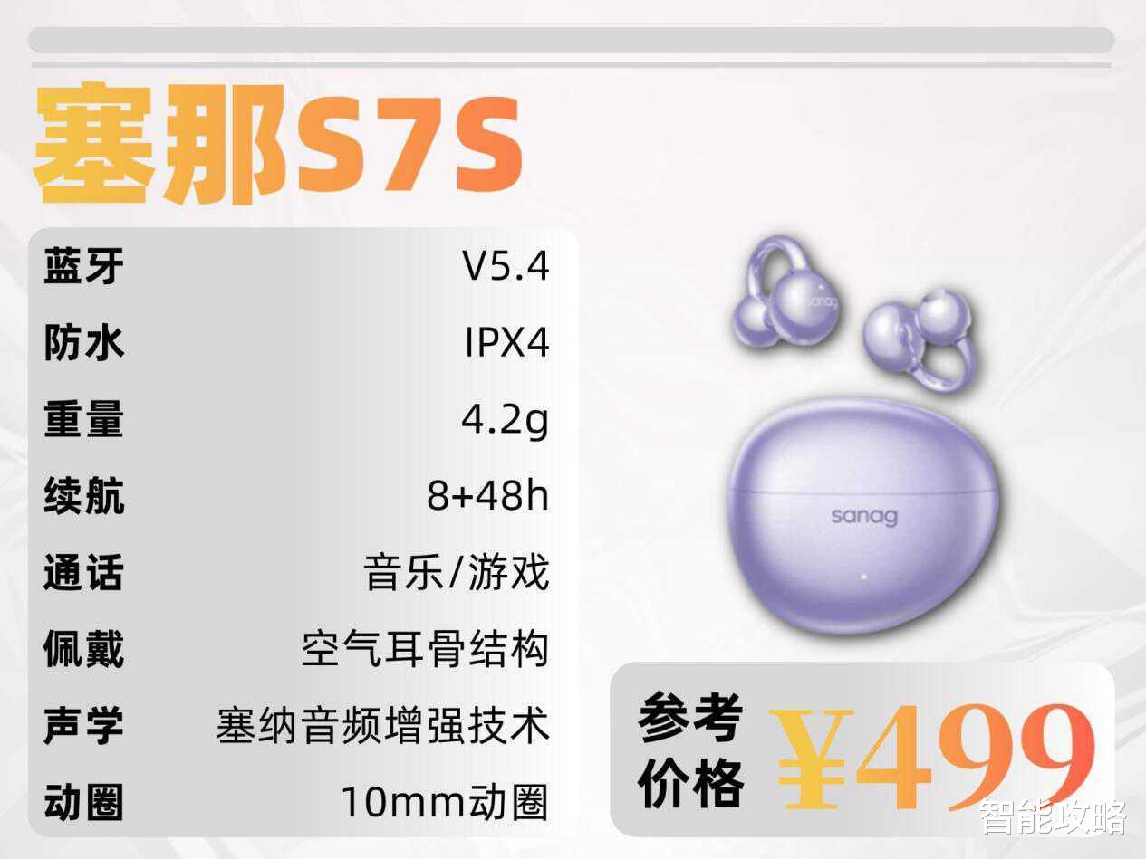 塞那 S7S 的佩戴舒适度着实不错!单耳重量轻盈到近乎无感,长时间佩戴下来耳朵也完全没有压迫感,特别适合我这种整天耳机不离身的人。记忆柔丝耳夹支臂兼具韧性与可调节性,能自适应贴合不同耳型,再搭配人体工学设计,跑步时狂甩也不会脱落,日常通勤、运动佩戴都超适配,使用体验直接拉满!不过音质表现就比较普通了,低频虽有增强处理,但总让人觉得不够醇厚,少了几分质感;中高频的解析力还算可以,但细节表现平平无奇,没什么亮眼之处,整体音质只能说是 “能听” 的水准,对音质有较高要求的朋友可能需要慎重考虑。