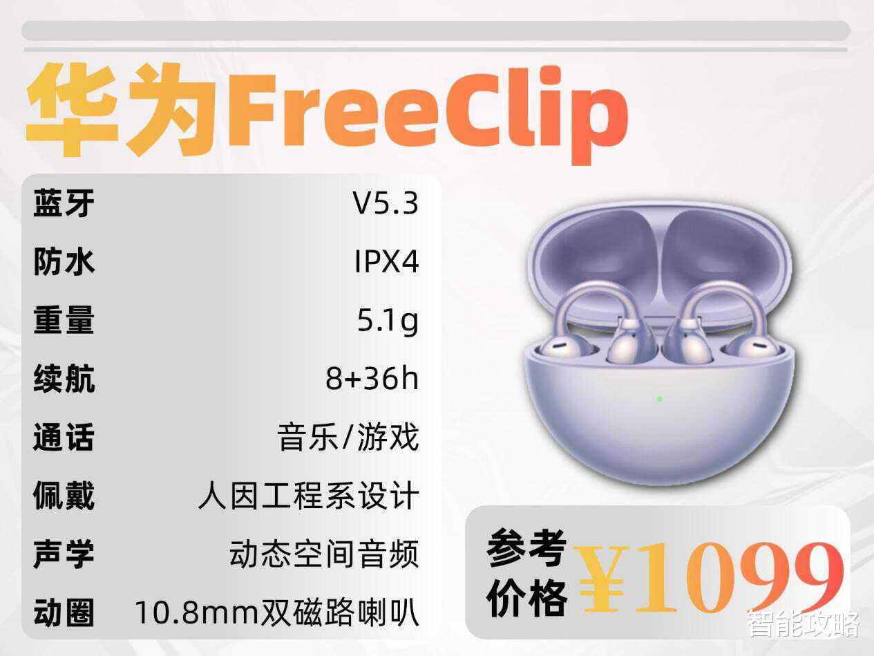 推荐理由:耳夹式耳机公认天花板,适合同生态用户。