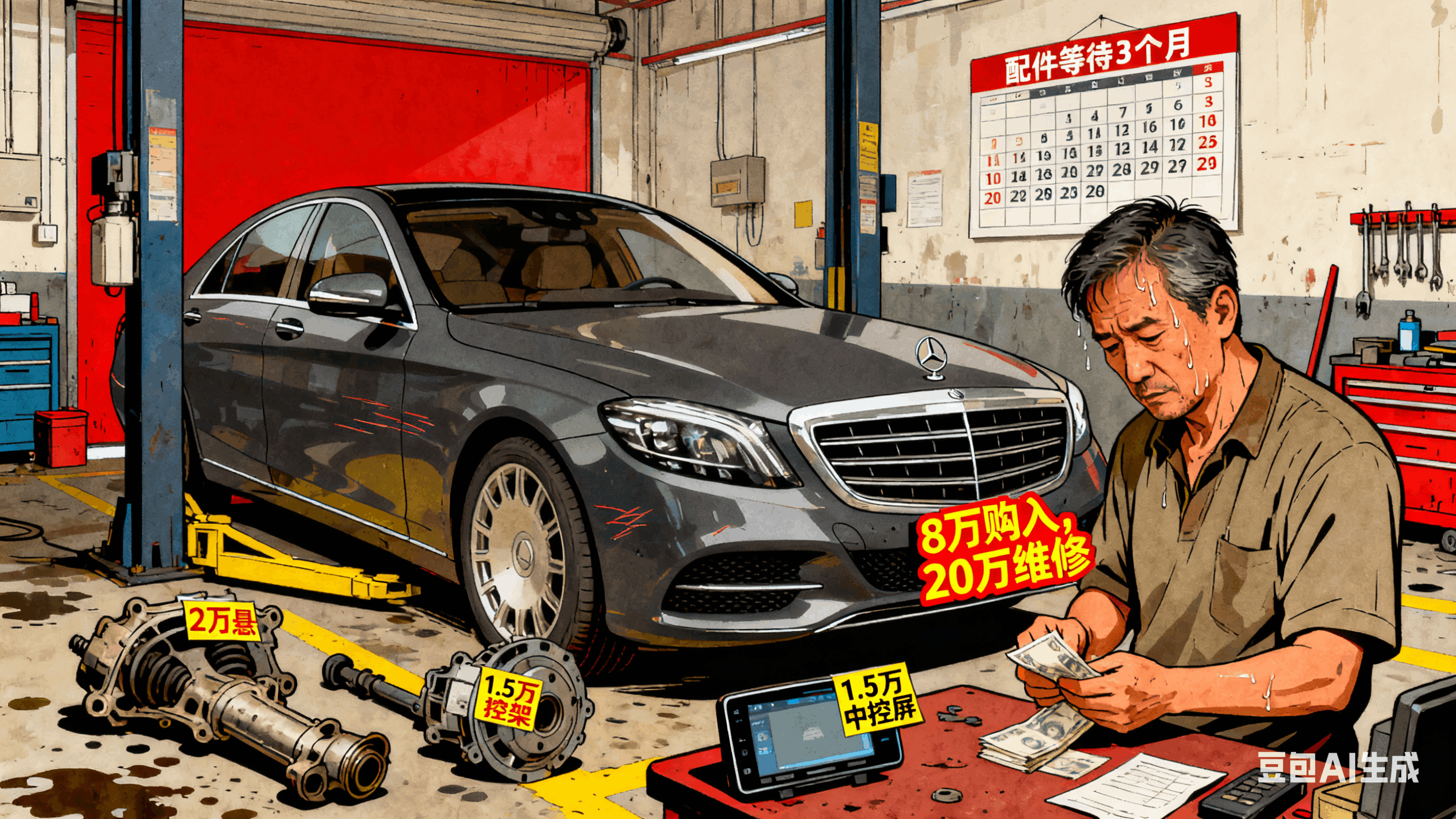 “30万的车现在只要零头”——别心动!老豪车维修能修到破产!一个电子悬架故障修2万,一块原厂中控屏换1万5。配件等待3个月是常态!普通人真玩不起。