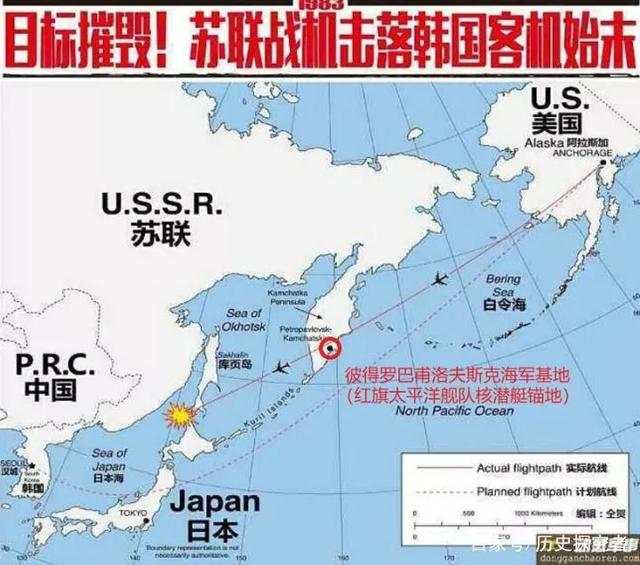五年前的1978年4月,韩国客机902班机从中转站阿拉斯加飞往汉城(首尔),途中偏离航线闯进苏联核基地上空,苏联误判为美国伪装的间谍客机将其击落。
