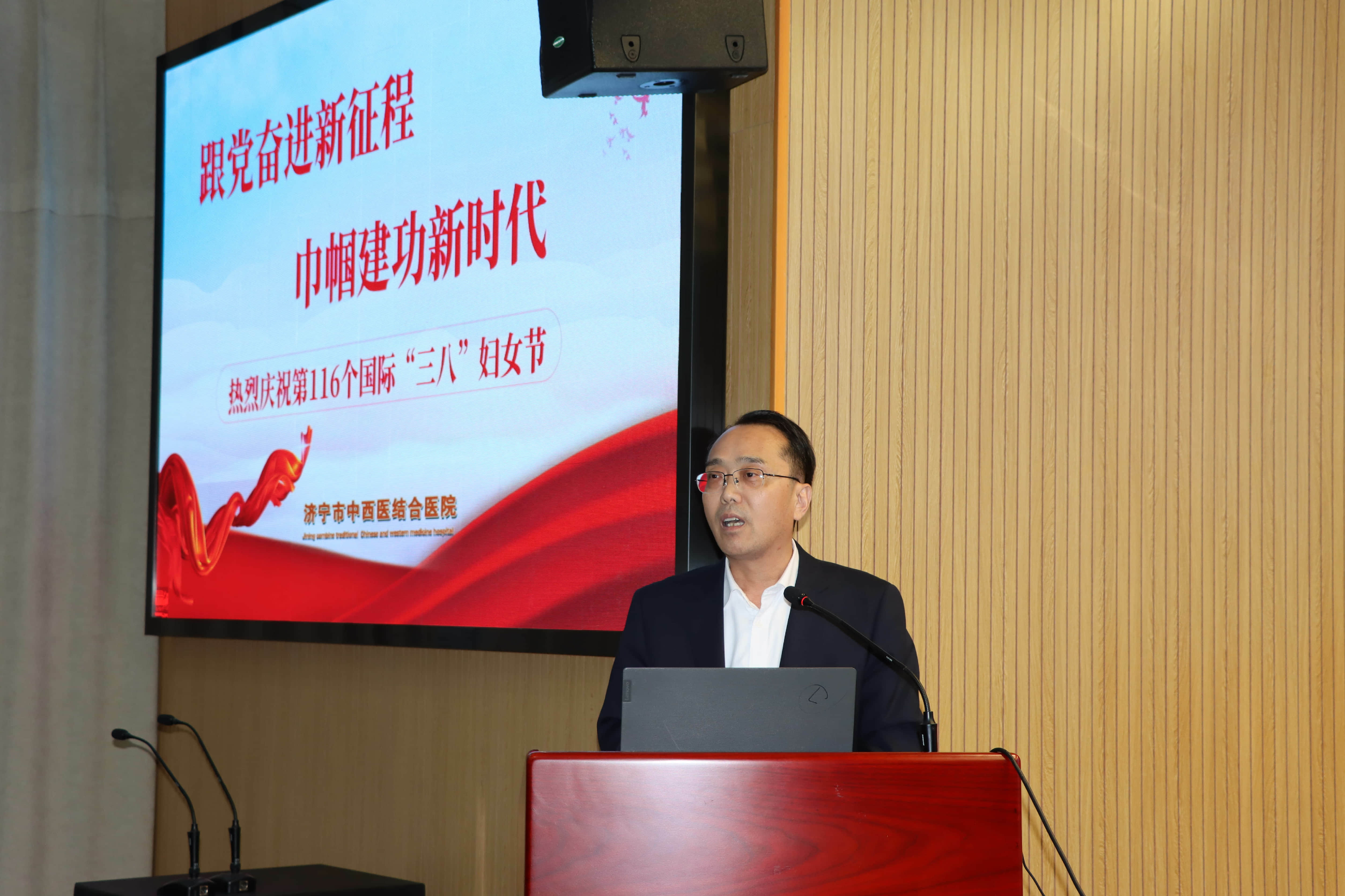 在“三八”国际劳动妇女节来临之际,为切实关爱全院女职工身心健康,帮助大家缓解工作生活压力,筑牢心理防线,3月6日傍晚,济宁市中西医结合医院联合济宁任城心理医院、智善儿童康复医院、济宁市儒康心理研究院,共同主办“三八”国际劳动妇女节心理健康专题讲座。活动特邀智善儿童康复医院副院长、济宁市儒康心理研究院副院长、国家二级心理咨询师孟祥芳主讲《减压赋能 做智慧女性》,济宁市中西医结合医院院长李红星主持活动,党委书记陈安东致辞,医院临床一线、医技护理、行政后勤等各岗位女职工齐聚一堂,共赴这场温暖的心灵赋能之约。