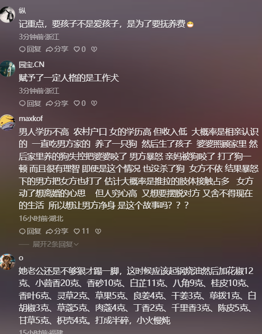 但是女生还是振振有词,她认为这条狗跟自己的宝宝是一样的,都养了好多年了。然后就跟婆婆吵架了。结果这条狗把婆婆的小腿咬伤了。