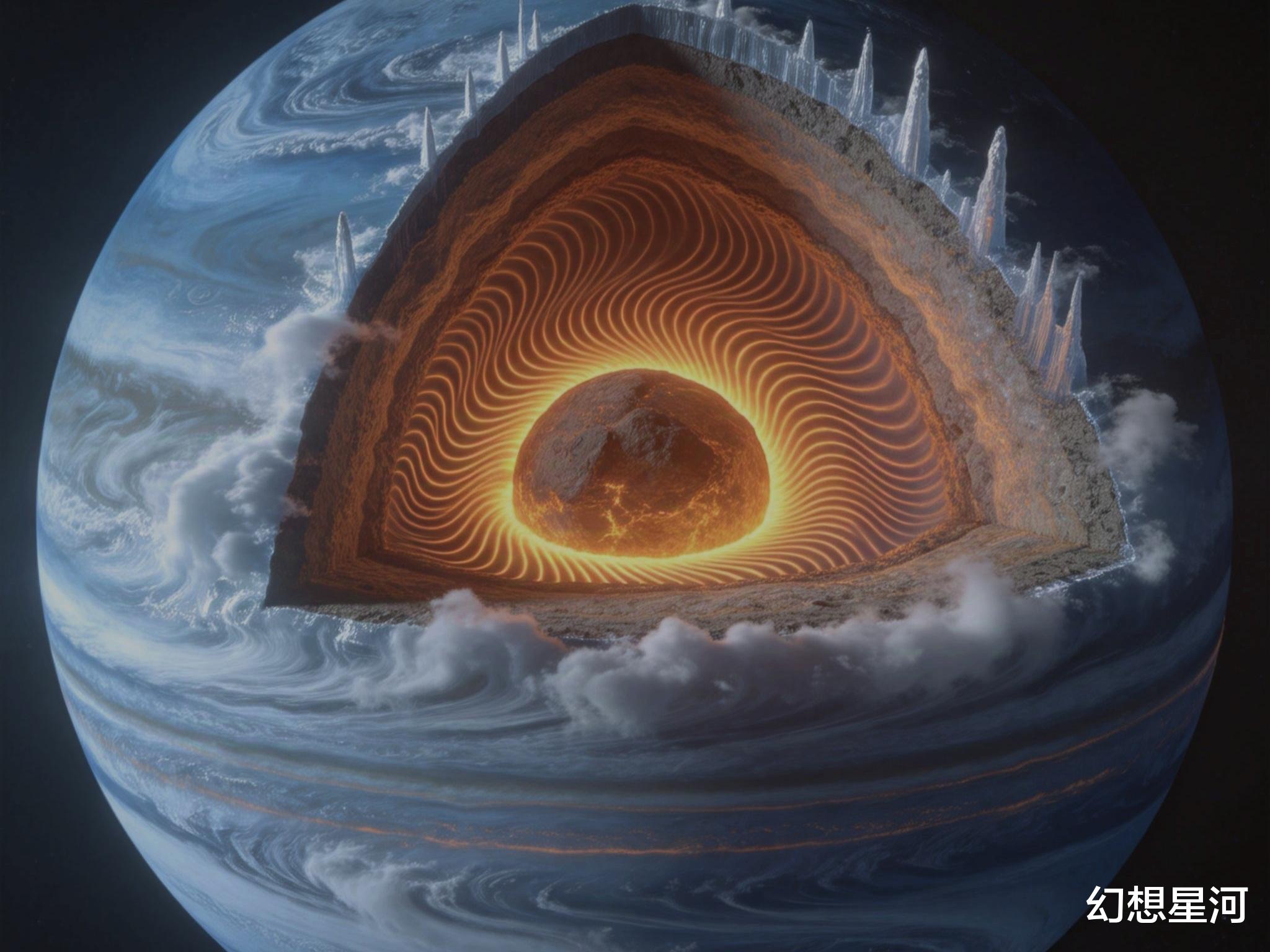 有人肯定会问。海王星离太阳那么远,能拿到的太阳辐射少得可怜。这么猛的大气活动,能量到底从哪来。答案就在海王星的内部。这颗行星从诞生的时候,就封存了大量形成时留下的热量。直到今天,它还在持续向外释放这些热量。这些热量推着大气层,形成剧烈的对流运动。海王星的自转周期大概17个小时,在太阳系的行星里,属于转得很快的那一类。快速自转带来的科里奥利效应,把原本垂直方向的对流气流,拧成沿纬度方向跑的急流。这些急流在赤道附近形成稳定的风带,一直维持着超音速的运动状态。
