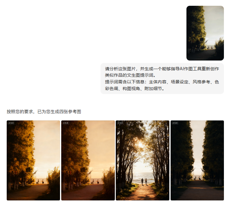 有时候我们为了增加更出色的效果,拿去发朋友圈惊艳别人,我们可以选择下面的提示词。