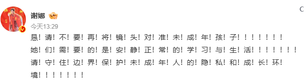 2月25日,有八卦媒体偷拍并传播了谢娜带着双胞胎女儿跳跳、俏俏上课的视频,毫无底线地窥探孩子的隐私,把未成年人当成流量密码肆意消费.一向在镜头前爱笑爱闹、被称为“太阳女神”的谢娜,这次是真的被逼急了,在社交平台上发出一段连用68个感叹号的怒吼,字字泣血:“请不要将镜头对准未成年孩子”,隔着屏幕,都能感受到她打字时的颤抖和护犊心切的愤怒。