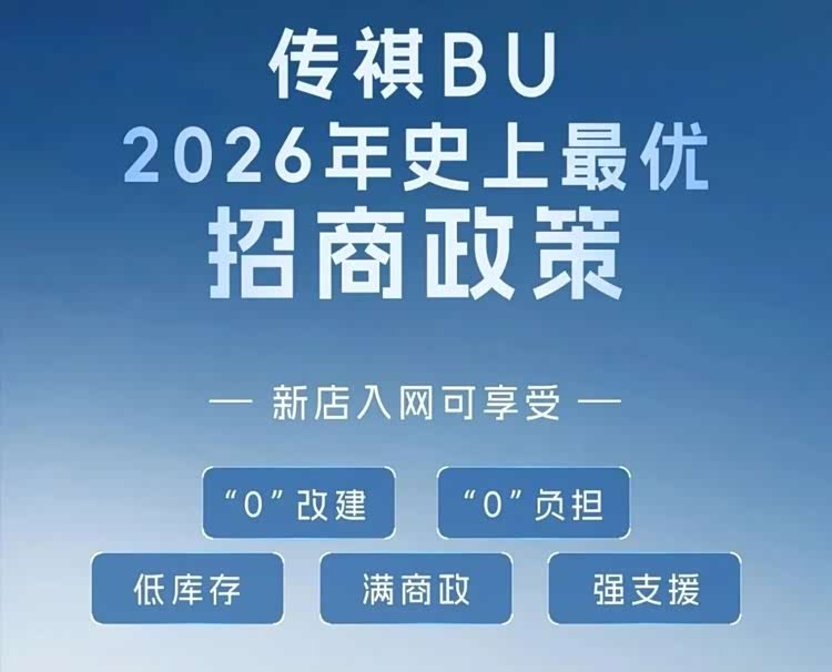 从实际行动中,可以看出此次战略落地的速度。昨晚,传祺BU面向经销商伙伴发布了被称为“史上最优”的2026年招商政策,通过“0改建、0负担、低库存”及专项补贴等实质性举措,直观展现出其赋能渠道终端、加速服务网络升级的迫切决心。